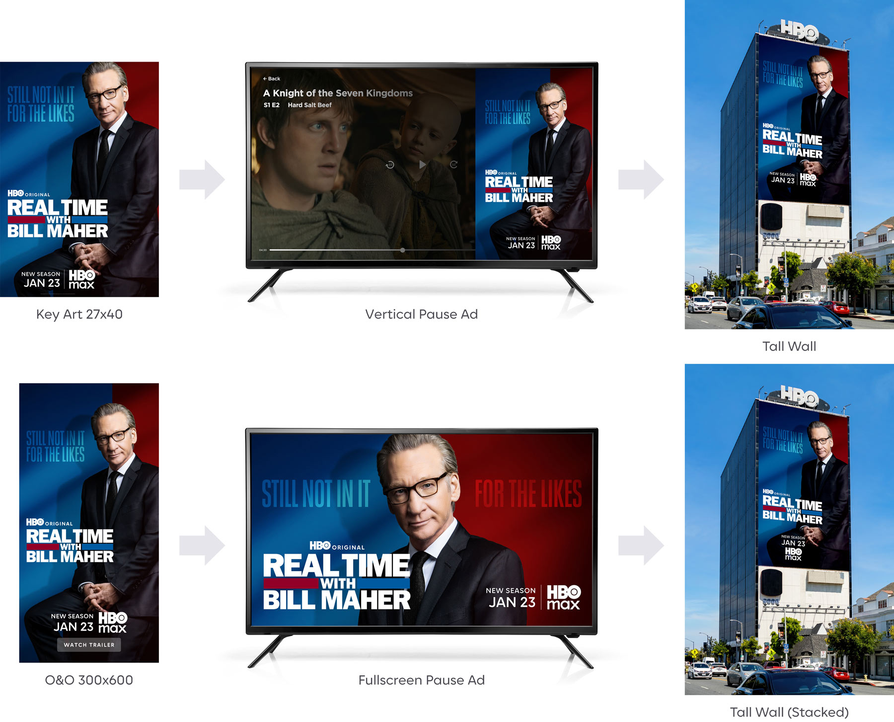 The “key art core assets” are the foundation for building out campaigns. The term key art is used to describe the source art for brand, theatricals, originals, and non-originals. These high resolution assets are used to build out various formats — including OOH, platform, O&O, digital display, and social media. See individual sections for guidance.