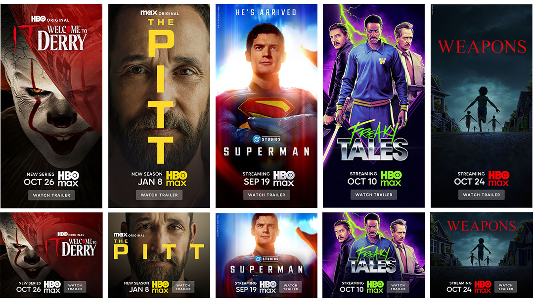 - Iridescent HBO Max logo: Required for all multi-title units.